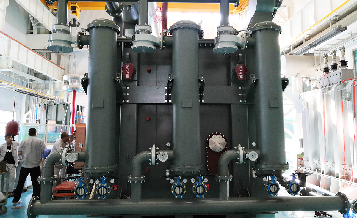 我國最大的電弧爐變壓器140MVA,配我們公司生產(chǎn)的YSFG-630X3兩重管冷卻器